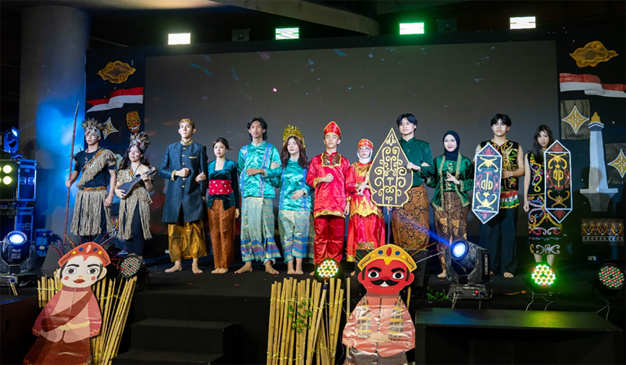 The theme highlights Indonesia’s historical journey and cultural transformation from the pre-independence era to its present-day achievements, encouraging Indonesian students to reflect on their roots and responsibilities as cultural ambassadors, while offering international students meaningful insight into Indonesia’s resilience, diversity, and national identity.